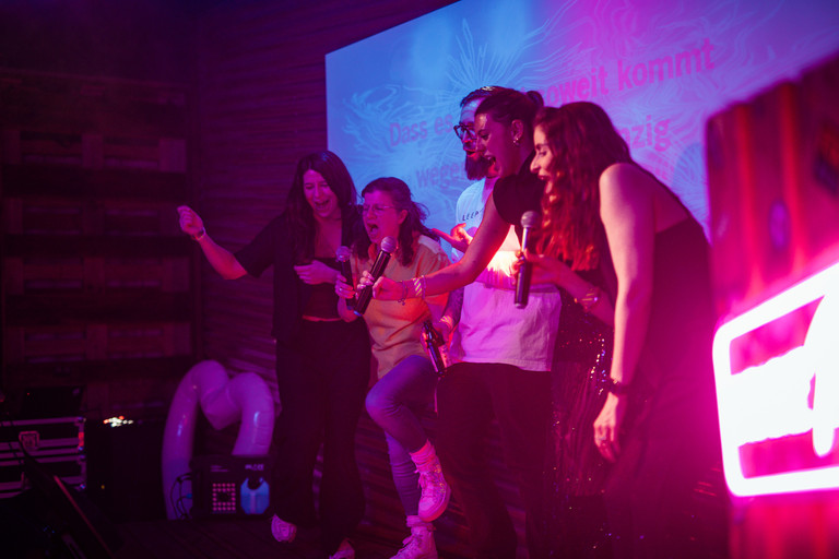 Dieses Jahr wurde unser Office zur Karaoke Bar: Mit Mikro in der Hand oder Drink an der Bar wurde gesungen, gefeiert und getanzt. Drag-Queen Pamela Power sorgte als erfahrener Karaoke Host für die richtige Stimmung und brachte die Gäste für einige Hit-Klassiker auf die Bühne.